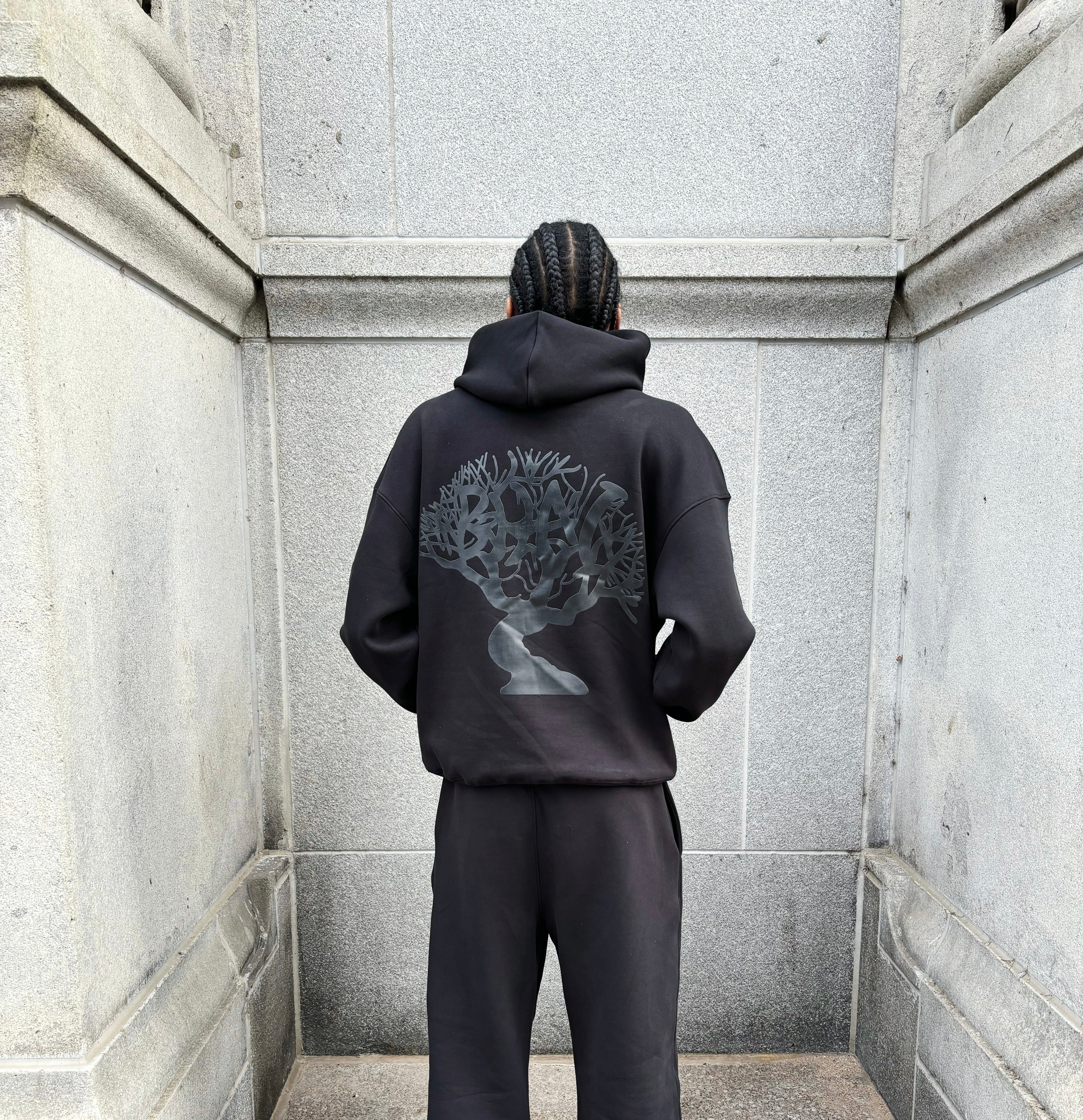 LOOK CLOSER. AMONGST THE WEB OF BRANCHES IN THE BACK OF THE HOODIE, YOU WILL FIND "BHAI" SPELLED OUT. THIS DESIGN SIGNIFIES THAT ALTHOUGH YOU MAY BRANCH OUT IN MANY WAYS THROUGHOUT YOUR LIFE, YOU WILL ALWAYS BE CONNECTED TO YOUR BASE. THE HEAVYWEIGHT "BRANCHES" HOODIE SERVES AS A REMINDER TO STAY TRUE TO YOUR VALUES.