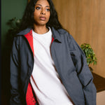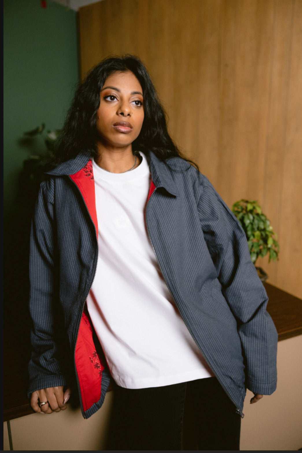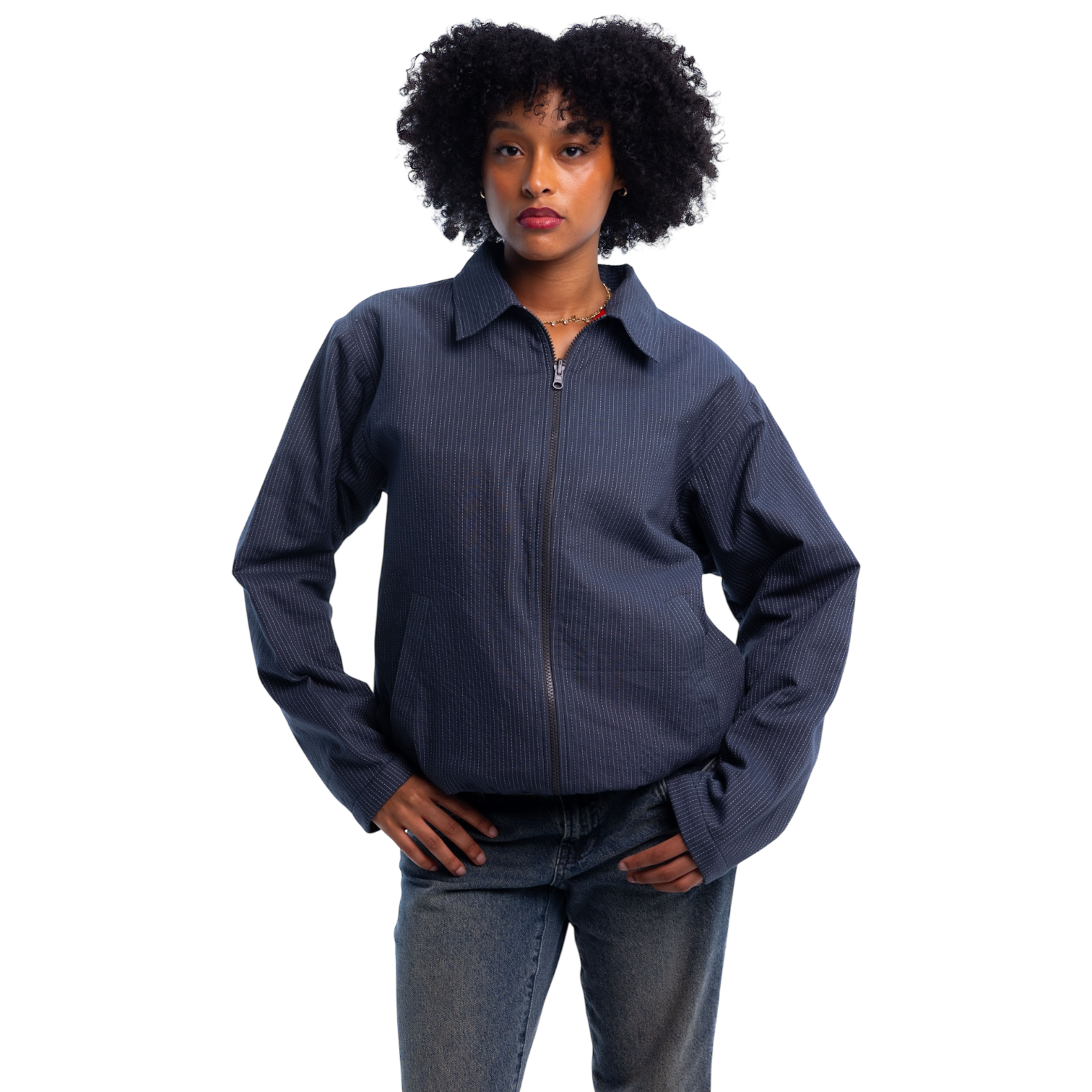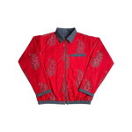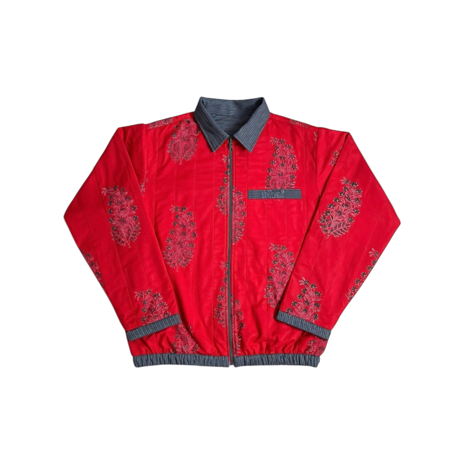 KANTHA IS A TRADITIONAL EMBROIDERY STYLE KNOWN FOR ITS DISTINCTIVE SMALL, STRAIGHT RUNNING STITCHES THAT CREATE ONE-OF-A-KIND TEXTILES. THE EXTERIOR OF OUR REVERSIBLE JACKET FEATURES A BLUE KANTHA FABRIC, QUILTED AND FINISHED ON THE INSIDE WITH A VIBRANT BLOCK-PRINTED COTTON.